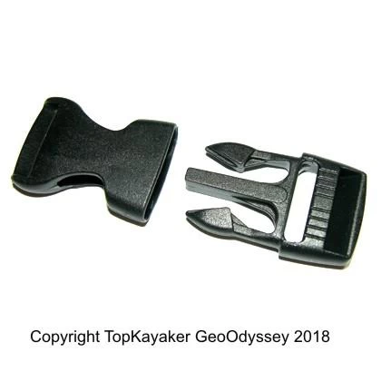 Standard 3/4 inch wide, ITW Nexus TSR 75 side release buckles commonly found on outdoor accessories. The male side of the buckle has an adjustable ladder-loc, the female side does not have a ladder-loc. The female side is typically secured with a 3/4 inch tri-glide (NOT included). Alternatively the female half can be sewn onto a strap. Sold as 50 complete buckle sets (male and female parts). 34WEB