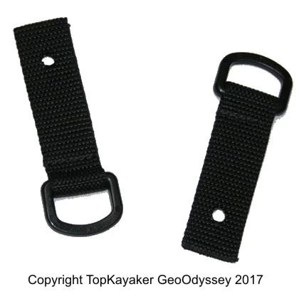 Color may be gray or black. The Phase 3 AirPro Straps with D-Rings are best used as a replacement straps for lost or damaged seat parts. Each strap is 1 inch wide by 4 inches long in total length, including the D-Ring. There is a screw hole melted in one end. These are used on the sides of the kayak in association with the AirPro Leg Lifter Panel (view Leg Lifter photo at link to left).