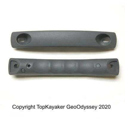 Arch Handles, in a 2 pack for Dagger kayaks, such as the Roam 9.5. Molded plastic, single screw hole each end, approximately 7.5 inches long. Mounting hardware is not included. Re-use the original screws if possible.