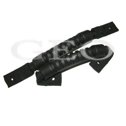 Add or replace a pair of handles on your kayak. Comfort Carry Handles are common on Perception, and Wilderness Systems kayaks. Found on bow and stern, on the sides of sit-on-top kayaks and in cockpit centers on some sit-on kayaks. Rubber grip is 5 inches long, webbing strap is 1 in. wide. Strap is a total of 10 inches long. Use extended or tucked. Screw Holes on webstrap are spaced at 9 inches with handle strap flat and unfolded, about 4 inches with ends tucked under (as shown). The handle can fit a wide range of screw spacing on deck, about 4 – 9 inches. (aka 3290-0102). Sold as a pair, no mounting hardware This is the best option for the discontinued D-Style Handle. Also sold as singles at this link: Bow-Stern-Side-Handle.