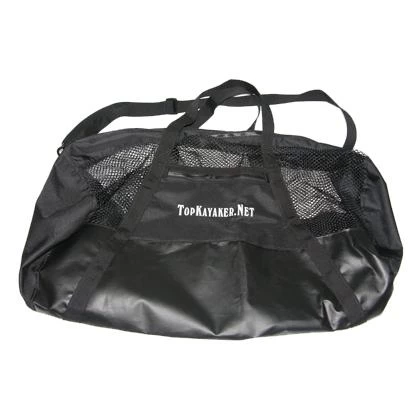 Keep your kayak gear organized and protected. This large 32 in. bag is made for kayak accessories with built in paddle keepers. Stow your PFD, backrest, knee straps, bowline, paddle leash and some assorted small stuff. Sit-in-side kayakers can stow their PFD, skirt, pump, paddle float and lines. Use it to store several PFDs or backrests at a time. The Deluxe Paddlers Gear Bag is also good for kayaking clothes, shoes, hats and gloves. The mesh netting on top allows airflow to prevent mildew. The Tuff waterproof fabric prevents wet spots in your car. Features: strong net mesh top, a heavy-duty bottom, full-length plastic zipper, removable shoulder strap, handles, fabric side panels, small zipper pocket and paddle keepers. 32 in. long by 16 in. diameter. Black.