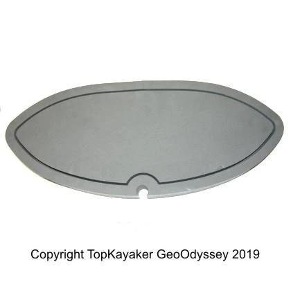 Center Bulkhead for the Necky Looksha T two-person sea kayak. Bulkhead 07.2000.0461 is 29.75 inches wide, by 12.5 inches high, by 3 inches thick. A round notch is on the bottom edge for the stiffening rod that runs down the center of the hull. This bulkhead is stamped 0461 and divides the bow and stern cockpits.