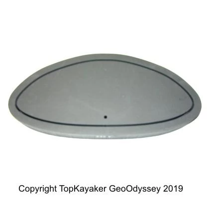 Stern Bulkhead for the Necky Looksha T two-person sea kayak. Bulkhead 07.2000.0460 is 25 inches wide, by 11 3/8 inches high, by 3 inches thick. A very small round vent hole passes through the bulkhead. This bulkhead is stamped 0460 and is located just aft of stern cockpit.