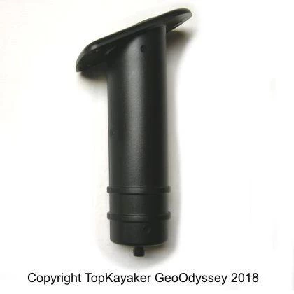 Ideal for small and tight spaces. The depth is approximately 6 inches. Best used to install, or replace, a recessed fishing pole holder on your kayak’s deck. Mounting hardware and instructions are not included. A cut-out template is not included, plan carefully. You must have a flat space on deck about 4 1/8 inches by 2 1/16 inches. Space under the deck needs to be about 6 1/2 inches deep to accommodate the angled mounting. Cork this rod holder with a Stopper, tied off to a eyelet (purchased separately), and it will be handy for a Fishing Pole Leash too. A cork is NOT needed, this will not leak if sealed to the deck with silicone sealant.