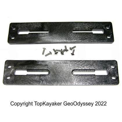 The accessory mounting system, for the late model Old Town Predator, consists of strategically placed high-strength polyethylene plates, this means no more drilling into your boat hull. See Example Photo with Rod Holders. 11.25 inches long, 2.5 inches wide, .5 inch thick. Four screw holes are 10.25 and 1.25, all on center. Made with slots for tracks (aka trax). These plates are durable and easy to customize with rod holders, fish finders, slide tracks, GPS and much more. Order as replacement plates, or as extras to make switching out pre-rigged gear as quick as 4-screws. This kit contains 2 plates and mounting hardware. This is an updated version of Old Town part number 01.1332.0022, made in China.