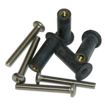 Large size four each: One Inch by 3/8 diameter 10-32 Well-Nuts and 1.5 inch, number ten 10-32 stainless steel screws. Use for extra thick mounting applications, such as a Scotty rod holder base or foot braces. (1 inch Well nut 07.2107.0000, 300162 and 1.5 inch screw 07.2108.0000, 300163.)