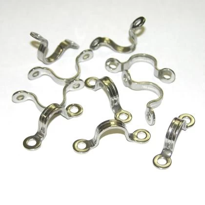 Small size, 7/16 inch stainless steel strap eyes. Ideal for custom bowsprit mod (use standard pop rivets) to the Kayak Sailor rig. The smaller size strap eye is best used for tight spaces and special applications. Dimensions, in inches, are: 7/16 high, screw holes are 1 1/8 on center. Takes a number 8 fastener (8-32 screws and well-nuts or use self tapping screws for light duty applications). Can be used for carry handles if secured with nut and bolt. 10 strap eyes to a pack.