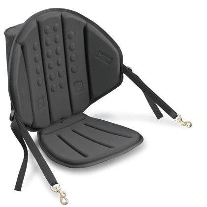 Provides greater support and more comfort for those who need and want a very comfortable ride. Best for bigger paddlers or those with “bad backs”. The back support is 18 in. high by 22 in. wide. Seat pad is 14 wide by 12 x 1 in. thick. The large cargo pocket will hold quite a lot of stuff. Pack size is 10.5 in. tall x 8 in. wide x 3 in. deep. The Tall-Back Backrest with Pack was commonly sold with Wilderness Systems kayaks aka Voyager kayak accessories. (Lifetime Guarantee)