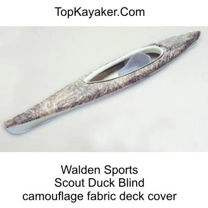 Stay hidden from waterfowl using this deck cover, converting your Scout into a floating duck blind as you hunt or fish. The Scout Duck Blind is a Shadowgrass camouflage fabric deck cover for the Walden Scout 12 foot kayak. This will cover the deck of the kayak, leaving the cockpit open and has a flap to conceal the rear cargo hatch.